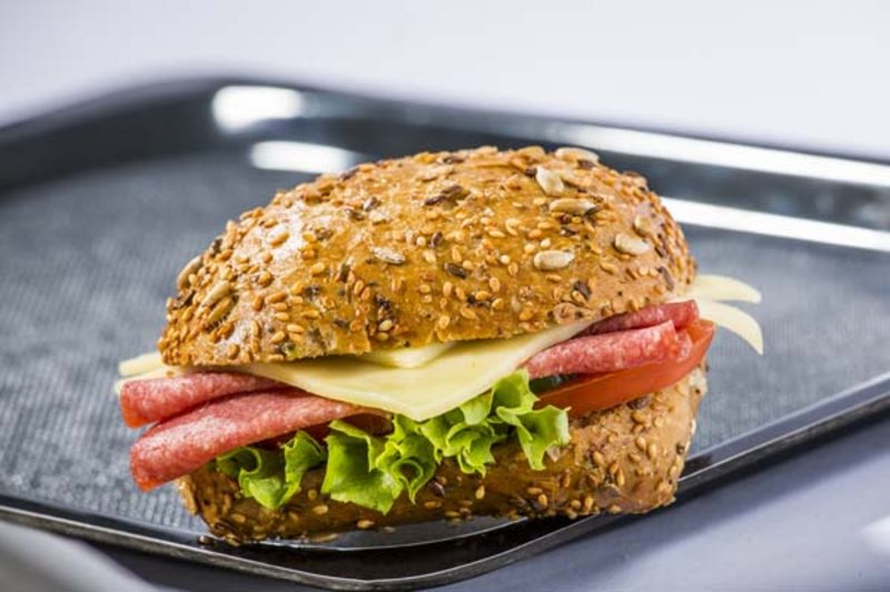 Ein Berliner Junge belegt mit Salat, Gouda, Kochschinken, Ei und Remoulade.
